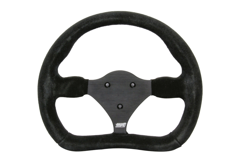 Steering Wheel - Road Course / Formula / Sports Car - 11.25 in Diameter - D-Shaped - Flat - 3-Spoke - Black Suede Grip - Aluminum - Black Anodized - Each