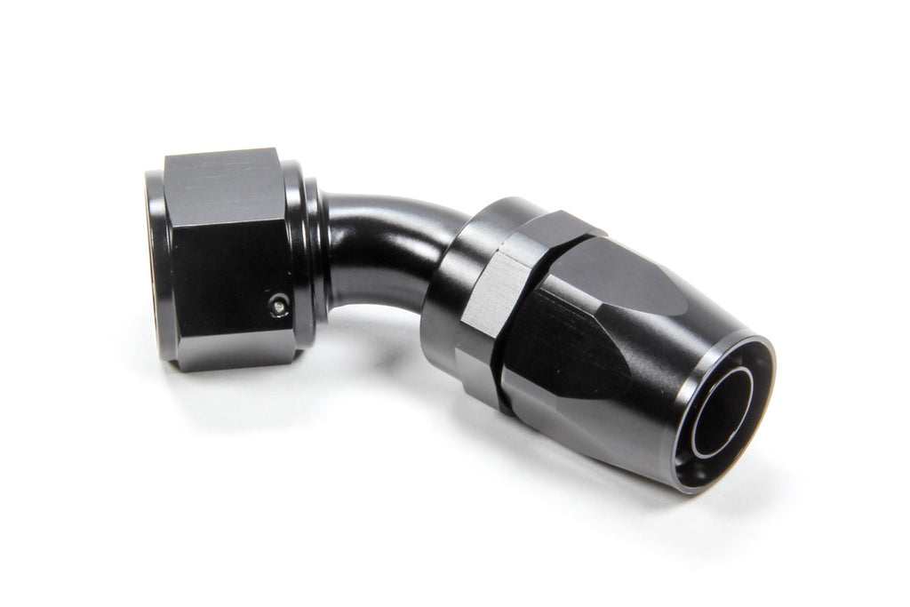 Fitting - Hose End - 45 Degree - 12 AN Hose to 12 AN Female - Swivel - Aluminum - Black Anodized - Each