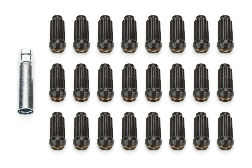 Lug Nut - 14 mm x 1.50 Thread - Spline Drive - 60 Degree Seat - Closed End - Steel - Black Chrome - Set of 24