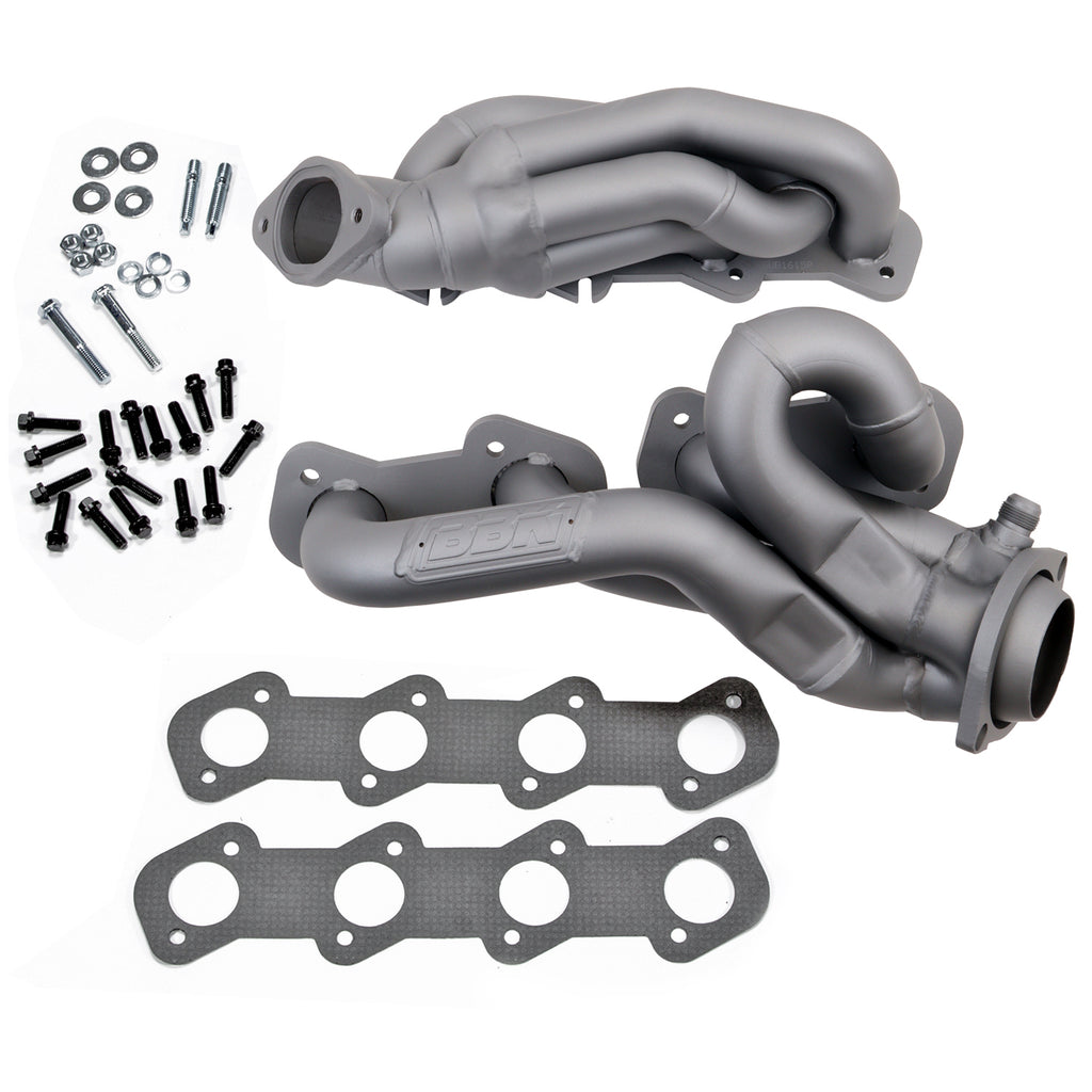 Headers - Tuned Length Shorty - 1.625 in Primary - Stock Collector Flange - Gaskets / Hardware Included - Steel - Titanium Ceramic - Ford Modular - Ford Mustang 1996-2004 - Pair