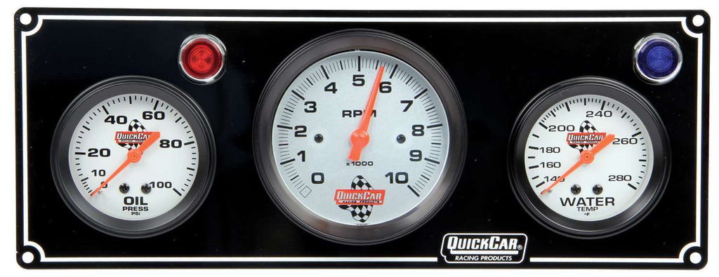 Quickcar Racing 2-1 Gauge Panel OP/WT w/ 3in Tach Black