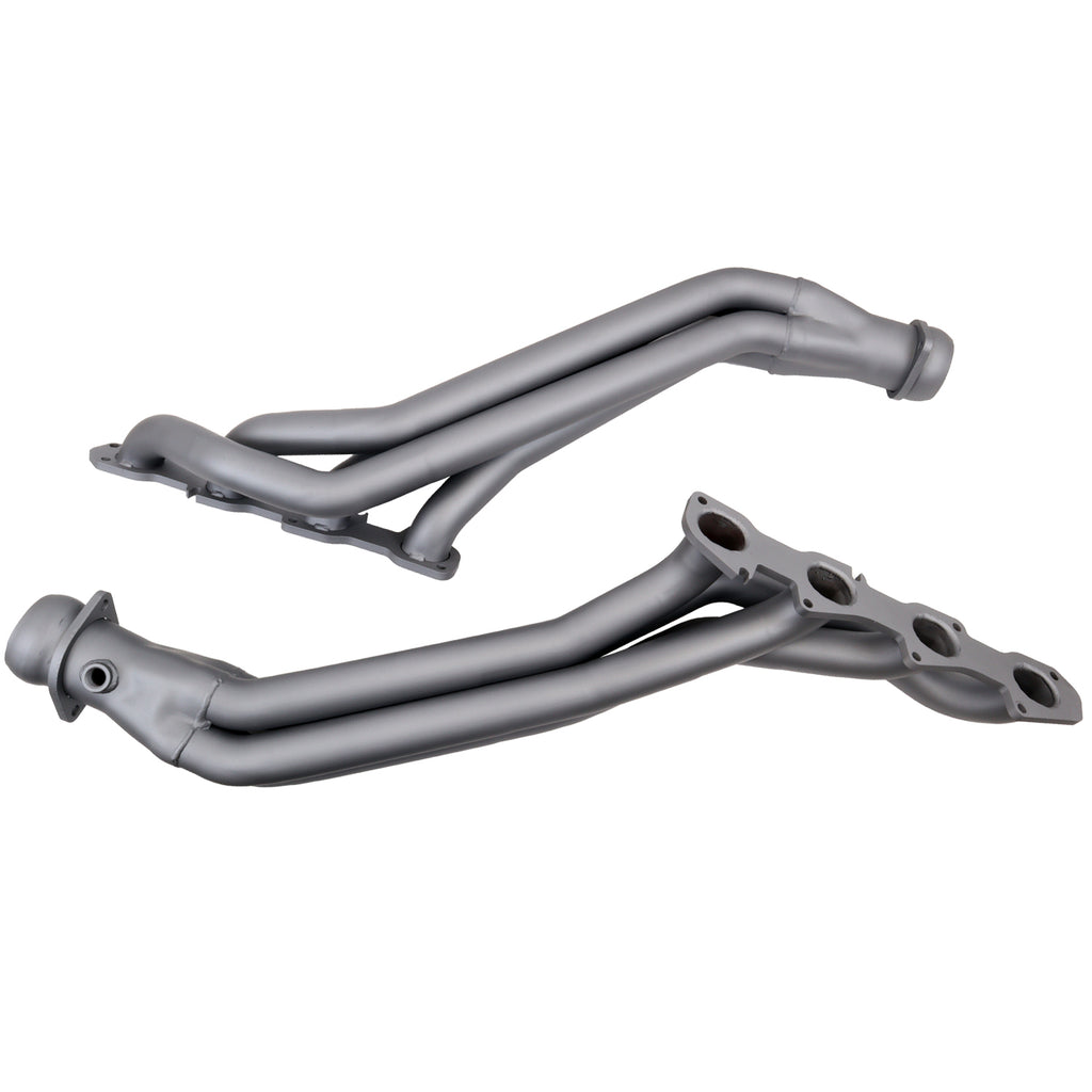 Increase the horsepower output of your 2006-2023 Dodge Challenger, Charger SRT8 or Hellcat 6.2L along with ALL 6.1L and 6.4L HEMI powered cars with these BBK Performance full length headers. BBK Performance full length headers will increase your exhaust flow giving you additional horsepower and torque. These full length headers will help give your engine a throaty exhaust note.These BBK Performance 1-7/8 full length long tube exhaust headers offer unsurpassed quality and fitment using top quality materials and American craftsmanship. Every long tube exhaust header system is hand built with CNC mandrel bent tubing for unrestrictive exhaust flow and maximum performance, 3/8" laser cut flanges, patented scavenging collector design and gasket less ball and socket connectors for easy installation. Every exhaust header has been designed specifically for your application to get the most horsepower and torque out of the engine. BBK long tube exhaust headers outperform the competition in quality value and performance. All headers are a direct fit bolt on replacement when used with the correct matching mid-pipes which are available with high flow catalytic converters. Our decades of exhaust design and experience make BBK Performance your number one choice for late model American car and truck performance exhaust. Require Mid Pipe Part # 16481 to complete installation to cat back exhaust.