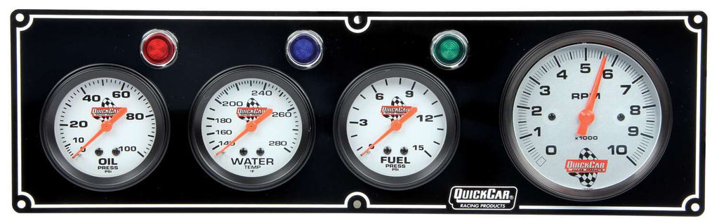 Gauge Panel Assembly - Fuel Pressure / Oil Pressure / Tachometer / Water Temperature - 3-3/8 in / 2-5/8 in Diameter - Silver Face - Warning Light - Kit