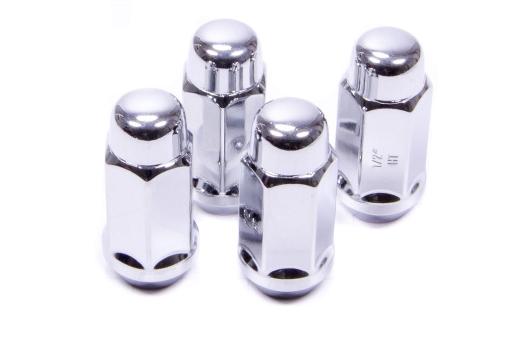 Lug Nut - Acorn Bulge Extra Long - 14 mm x 2.00 Right Hand Thread - 3/4 in Hex Head - 60 Degree Seat - Closed End - Heat Treated - Steel - Chrome - Set of 4