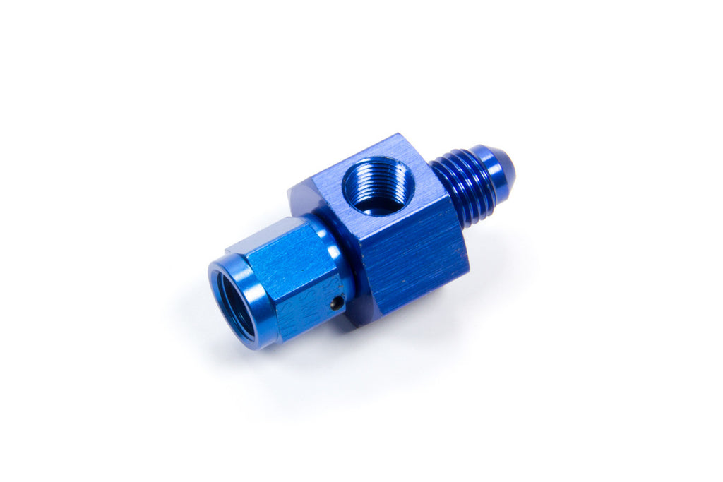 Fitting - Gauge Adapter - Straight - 4 AN Female to 4 AN Male - 1/8 in NPT Gauge Port - Aluminum - Blue Anodized - Each