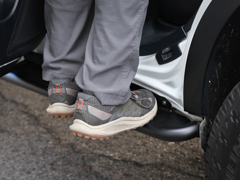 Introducing the Subaru Outback Terra Guard Off-Road Slider step, the ultimate body protection for your Subaru. Crafted from heavy-gauge steel, this rugged upgrade replaces the factory lower plastic cladding, ensuring ultimate protection when navigating rocky terrains. With its innovative design, the bottom wraps around the pinch seam for added strength, while maintaining no loss of ground clearance. The entire pinch seam rail can even be used as a jacking point, providing versatility on your off-road adventures. The slider also offers a safe and secure platform to access your rooftop storage and gear. Upgrade your Subaru Outback and conquer any terrain with confidence. Slider is crafted from 1/8 inch steel plate that forms to the rocker panel, wrapping around the pinch rail with 1/8 inch wall tubing outer profile for ultimate protection when sliding on or pivoting around obstacles. Our Terra Guard Off-Road Slider matches the factory rocker panel profile increasing over all ground clearance. Entire pinch seam rail can be used as a jacking point. Our large step pad area provides a secure platform to gain access to roof top storage and gear. Replaces factory lower plastic cladding, utilizing original mounting points with no drilling or cutting required. Slotted drain holes in pinch seam rail allow for water drainage. Finished in a textured black powder coating not only ensures long-lasting durability but also adds a rugged look to your vehicle's appearance.