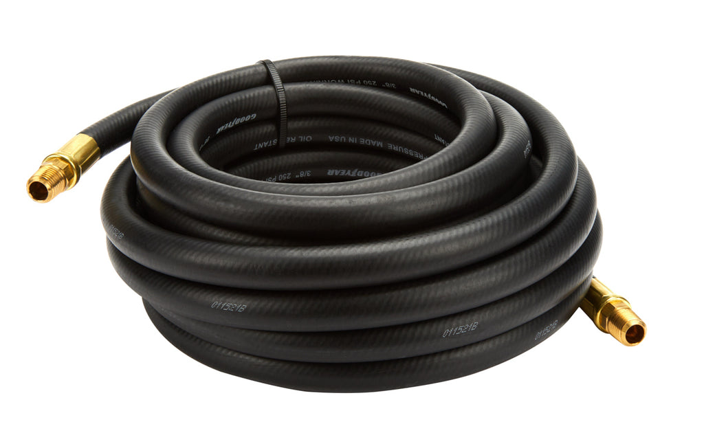 Air Hose - 0.375 in ID - 25 ft Long - Fittings Included - Rubber / Brass - Red - Each