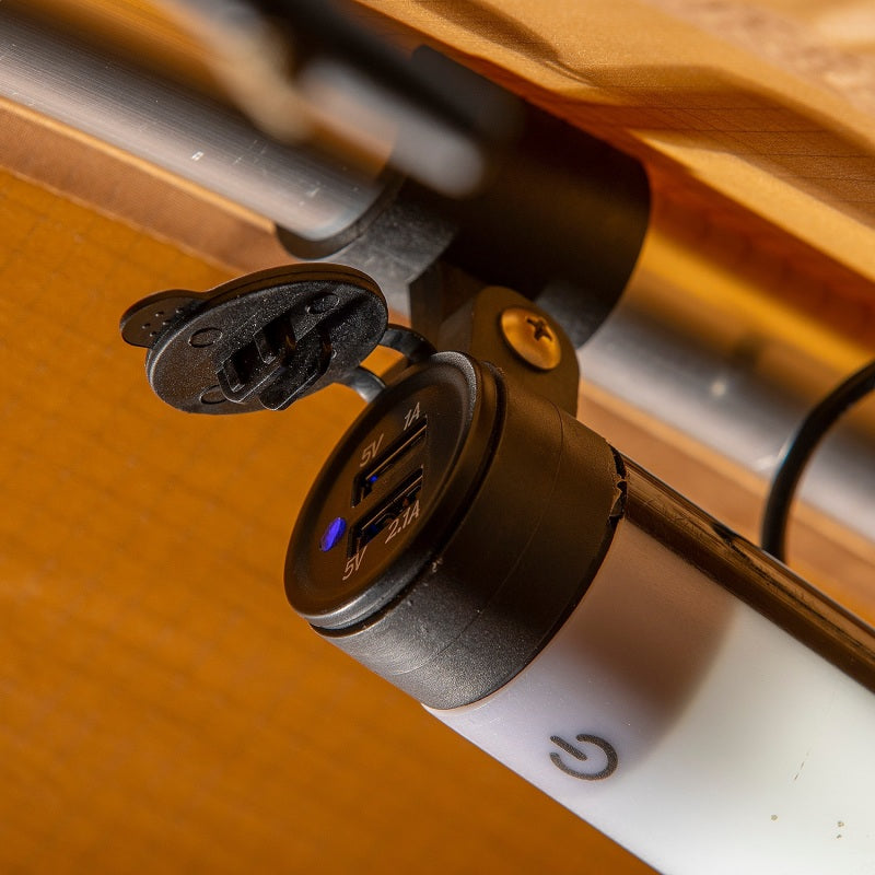 Boasting 300 lumens of light output and IP54 splash resistance, this touch-sensitive light fully illuminates your roof top tent while consuming less than one amp. ARB's Rooftop Tent Light is a do-it-yourself lighting and power system that suits most roof top tents or awnings with 25mm tubing. The light is dimmable to provide a just-right glow for reading, relaxing or getting situated for a good night's sleep. Its touch controls mean no more fumbling around in the dark for the power switch. The ARB Tent Light is not just lighting, it also includes an eight amp continuous draw 12V cig style socket and two USB ports to help charge devices and bring power from the vehicle up into your tent.