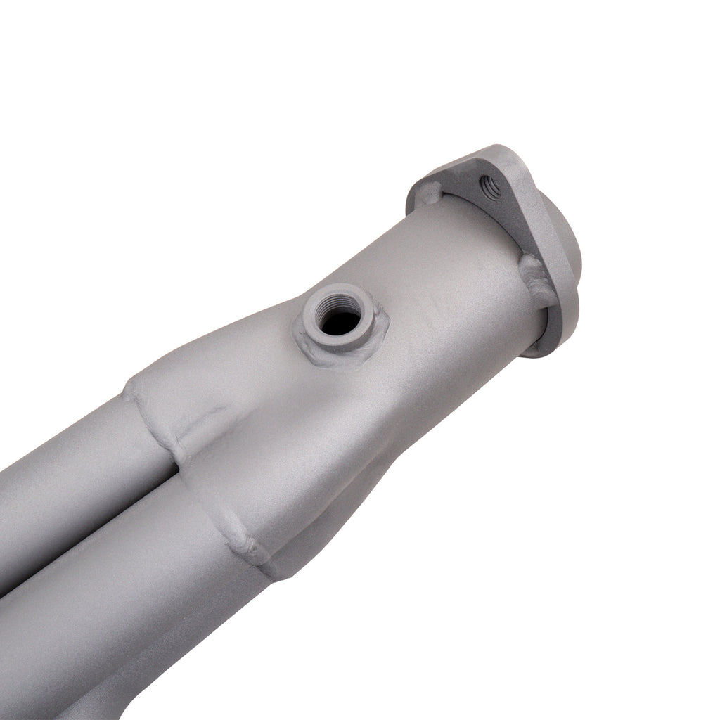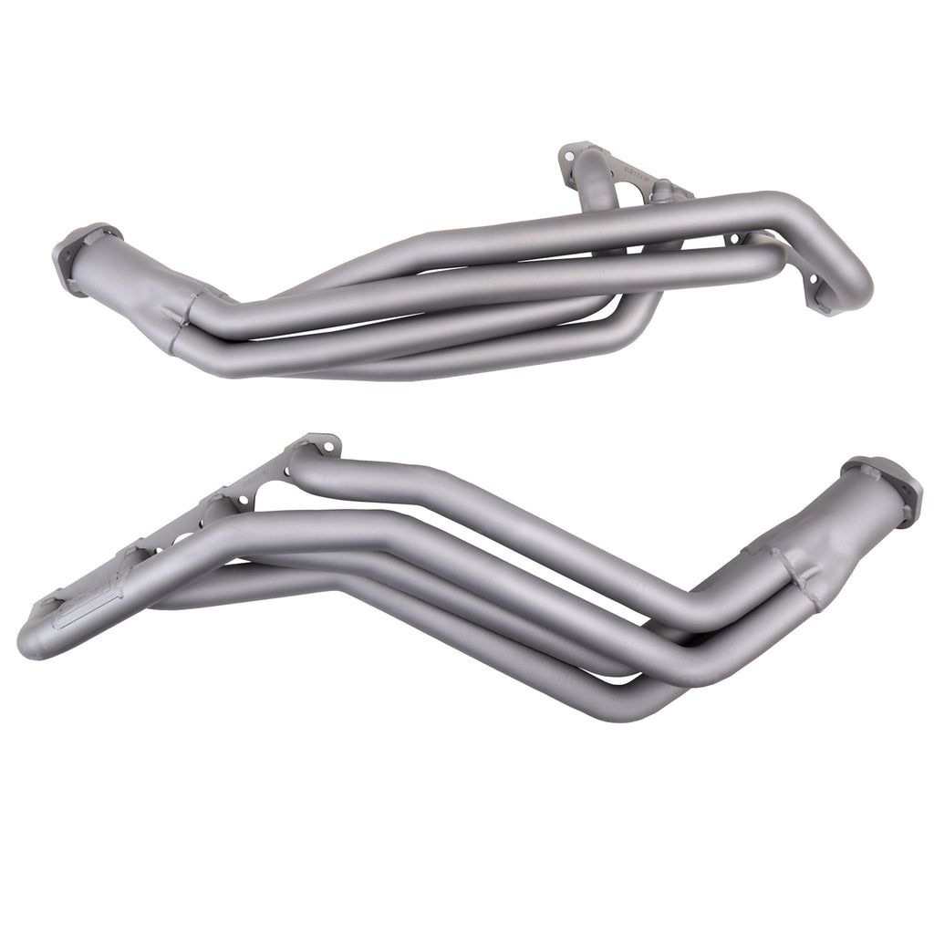 | Description_MKT | BBK Performance full length long tube exhaust headers offer unsurpassed quality and fitment using top quality materials and American craftsmanship. Every long tube exhaust header system is hand built with CNC mandrel bent tubing for unrestrictive exhaust flow and maximum performance, 3/8" laser cut flanges, patented scavenging collector design and gasket less ball and socket connectors for easy installation. Every exhaust header has been designed specifically for your application to get the most horsepower and torque out of the engine. BBK long tube exhaust headers outperform the competition in quality value and performance. All headers are a direct fit bolt on replacement when used with the correct matching mid-pipes which are available with high flow catalytic converters. Our decades of exhaust design and experience make BBK Performance your number one choice for late model American car and truck performance exhaust.Fitment: Manual Transmission ONLY - Will NOT work on Automatic |