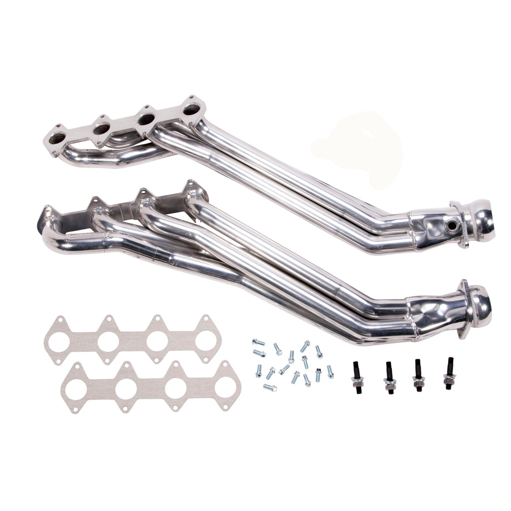 | Description_MKT | These BBK Performance full length long tube exhaust headers offer unsurpassed quality and fitment using top quality materials and American craftsmanship. Every long tube exhaust header system is hand built with CNC mandrel bent tubing for unrestrictive exhaust flow and maximum performance, 3/8" laser cut flanges, patented scavenging collector design and gasket less ball and socket connectors for easy installation. Every exhaust header has been designed specifically for your application to get the most horsepower and torque out of the engine. BBK long tube exhaust headers outperform the competition in quality value and performance. All headers are a direct fit bolt on replacement when used with the correct matching mid-pipes which are available with high flow catalytic converters. Our decades of exhaust design and experience make BBK Performance your number one choice for late model American car and truck performance exhaust. Requires Mid Pipe Part # 1637 To complete installation. Fitment: Fit Manual Transmission ONLY - Will NOT work on Automatic |