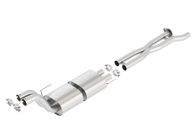 This Mid-Section includes a merge X-Pipe and ATAK(r) mufflers for increased performance and our distinctive BORLA(r) sound. X-Pipes unleash hidden horsepower. It fits with either the O.E. tailpipes or BORLA(r) tailpipes. Built from premium T-304 stainless steel, superior to T-400 series (such as 409), to give you the absolute best in performance and durability. Ultra-smooth mandrel bends ensure maximum flow & power, and precision computer numerical control (CNC) manufacturing ensures an accurate fit. Best of all, BORLA(r) stands behind every Mid-Section with a Million-Mile Warranty. Just what you'd expect from the world's most experienced (and most winning) exhaust brand.