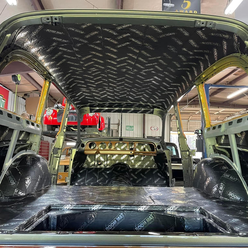 Boom Mat Vibration Damping Material is a premium quality damping material providing extreme noise damping for the most demanding commercial and sound competition applications. Interior panels vibrate and generate noise. Boom Mat stops that noise by trapping it between our thick, 4 mil aluminum stiffening top skin and the asphalt free, pure butyl, noise constraining layer. Plus worry-free no snag adhesion to any interior surface, vertical or overhead, even in the most demanding of temperature extremes. Those quality components are what makes Boom Mat Vibration Damping Material require only 25-50% coverage to get the job done. This saves weight, material cost and installation time. Easy peel plastic release liner (not a paper backing that tears) Enhances stereo performance and sound Gives you a quiet and comfortable interior Minimal prep & install time Performs in extreme temperatures Use as a first layer to control noise and dampen vibrations 2 (two) 12.5in x 24in sheets (4 sq. ft.) 4mm thick