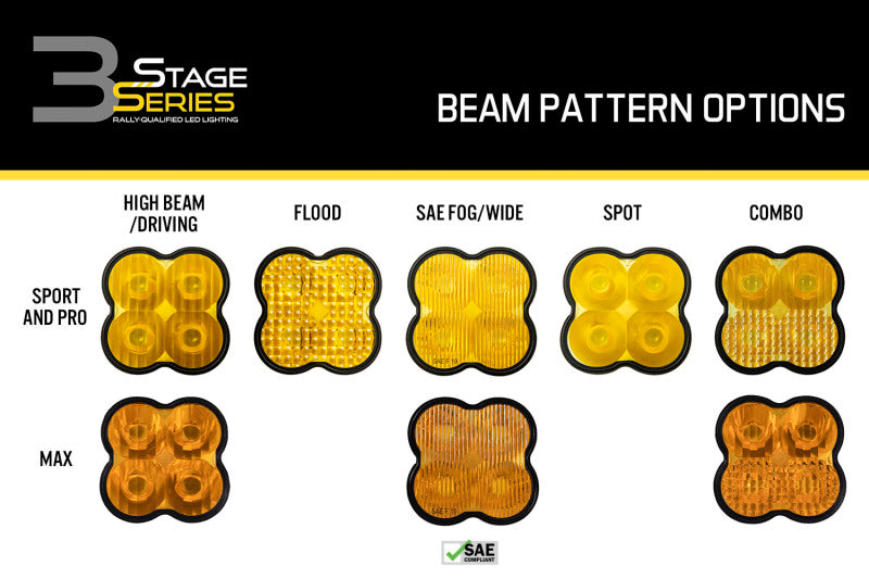 FeaturesYellow replacement lens for SS3 LED PodMade out of durable polycarbonate with preinstalled o-ring sealAdvanced TIR optics provide high efficiency and focusAvailable in Driving SAE Fog or Combo beam patternsOverviewThis yellow lens is a direct replacement for the original main lens in your SS3 LED Pod. It can be used to change both the color and output pattern with a quick swap! Each lens comes with an integrated o-ring to maintain a watertight seal.Easy Swap. Changing the main lens in the SS3 takes just a few seconds! Remove the four torx-head screws from the back frame pull the old lens and o-ring assembly out and put in your new lens which comes with the o-ring preinstalled. Take care not to touch the inner optical surface of your new lens during the swap or wear a pair of gloves to keep things clean. The locating pins ensure correct alignment and rotation. Reinstall the four screws so they are very hand-tight and you are ready to shine in your new color or beam pattern!Colors. SS3 LED pod lenses are available in clear material producing white light or a selective yellow filter. You can change the color of your lights by swapping out the lens but please note that changing colors may not be perfect with these lenses because different LEDs are used depending on the color of light you originally purchased. If you purchased Max pods originally they have 6000K white emitters. In order to match the yellow output of our Sport and Pro Yellow SS3 pods the lenses are a darker more amber color.