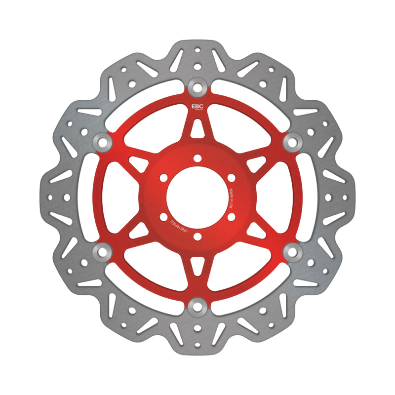 EBC Brakes™ Vee-Rotors™ Replacement Discs are British made discs using German mill rolled precision stainless steel rotor blades with a VEE profile weight reducing profile mounted onto lightweight alloy center hubs, using the patented SD square drive button technology.
