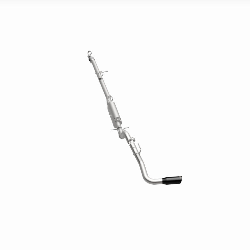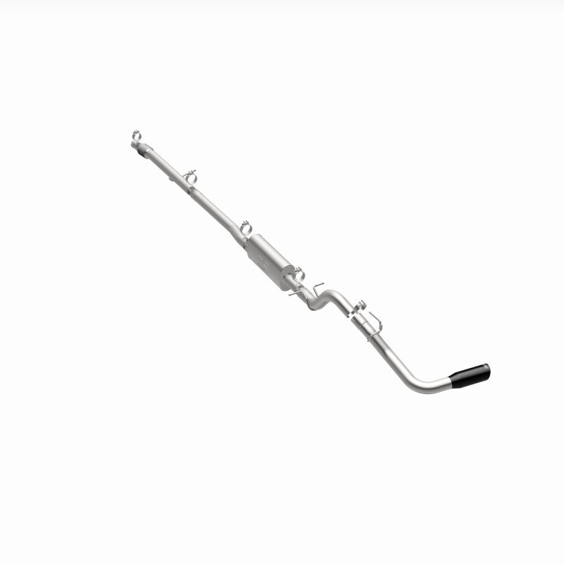 The MagnaFlow 2024 Ford Ranger SPEQ Series Cat-Back Performance Exhaust System 19634 brings out the personality of your truck with our signature resonant, powerful exhaust tone and dyno-proven performance. #19634 3” diameter mandrel bent main piping passes through an all-new specifically tuned performance oval muffler before exiting in a single driver side rear exit with a 4” black chrome welded-on double wall angle cut rolled edge tip. This mid-size truck exhaust kit is the perfect equalizer between sound and performance. Upgrade your truck to the next level with an exhaust that has the pipes to put other trucks to shame. With this system your truck will be producing moderate exterior and mild interior sound levels while leaving other trucks feeling envious at every stoplight. Exhaust kit 19634 features a cat-back exhaust layout that replaces your trucks stock exhaust components from near the catalytic converter on back. Extensive 3D scanning during development has resulted in a direct-fit design that you can easily install yourself. 19634 is produced using CNC precision robotic manufacturing techniques and is backed by MagnaFlow's 1-year limited finish warranty and limited lifetime construction warranty.