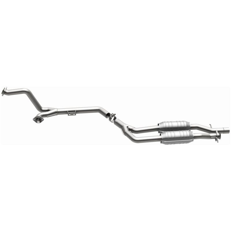 Keep the check engine light off with MagnaFlow Standard Grade Federal/EPA Compliant Direct-Fit Catalytic Converter 23581. With features including free-flowing mandrel-bent tubing and highly corrosion resistant stainless steel construction, easily install this spun body converter yourself using the proper tools, no cutting or welding required. MagnaFlow's state-of-the-art metrology department uses the latest 3D scanning systems during research and development, so you can be confident that your new part will fit and function like the original equipment. By replicating the OE spun body design, the single laser fusion weld greatly reduces the possibility of a leak, and our compact, low-mass design also allows for greater thermal efficiency. This direct-fit catalytic converter is designed specifically for the 1992-1993 Mercedes-Benz 500E. Hardware is included to eliminate the hassle of working with corroded factory parts. This replacement part is designed to meet or exceed Federal emissions requirements set forth by the EPA, complying with legal standards for pre-OBDII Federally registered vehicles.