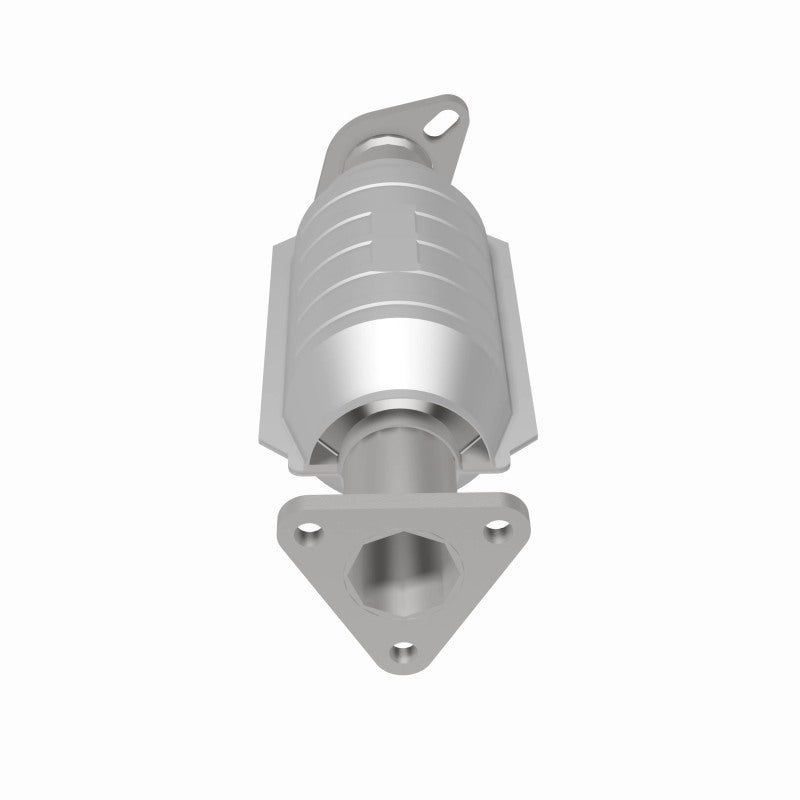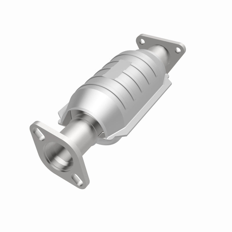 Keep the check engine light off with MagnaFlow HM Grade Federal/EPA Compliant Direct-Fit Catalytic Converter 23879. With features including free-flowing mandrel-bent tubing and highly corrosion resistant stainless steel construction, easily install this spun body converter yourself using the proper tools, no cutting or welding required. MagnaFlow's state-of-the-art metrology department uses the latest 3D scanning systems during research and development, so you can be confident that your new part will fit and function like the original equipment. By replicating the OE spun body design, the single laser fusion weld greatly reduces the possibility of a leak, and our compact, low-mass design also allows for greater thermal efficiency. This direct-fit catalytic converter is designed specifically for the 1995-1997 Hyundai Accent and interchanges with OE part 28950-22070. This replacement part is designed to meet or exceed Federal emissions requirements set forth by the EPA, complying with legal standards for OBDII Federally registered vehicles with Federal/EPA Emission systems.