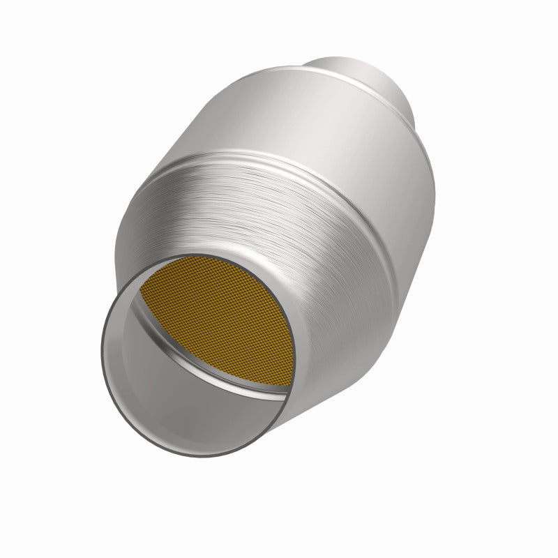 Keep the check engine light off with MagnaFlow OEM Grade Federal/EPA Compliant Universal Catalytic Converter 51779. The Universal design allows the part to fit a wide array of vehicles (cutting and welding required), and the stainless steel construction of this spun body catalytic converter is highly resistant to corrosion. The single laser fusion weld of the spun body greatly reduces the possibility of a leak, and our compact, low-mass design also allows for greater thermal efficiency. This replacement part is designed to meet or exceed Federal emissions requirements set forth by the EPA, complying with legal standards for OBDII Federally registered vehicles with California or Federal/EPA Emission systems.