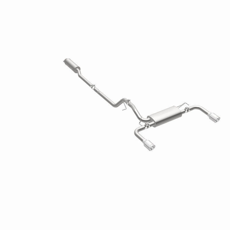 The MagnaFlow 2013-2019 Ford Escape Street Series Cat-Back Performance Exhaust System 15203 brings out the personality of your 1.6L, 2.0L 2013-2019 Ford Escape with our signature resonant, powerful engine tone and dyno-proven performance. Thanks to its fast-flowing, mandrel bent 2.25in. main piping and 2 Straight-Through mufflers ending in a Dual Split Rear exit with 4in. Polished Welded-On Double Wall Angle Cut Rolled Edge tips, this Ford Escape exhaust kit has the performance chops to match its sporty sound and appearance. Upgrade your ride to the next level with an exhaust that has the pipes to put other Ford Escape's to shame. With this system your vehicle will be producing Moderate exterior and Mild interior sound levels while leaving other cars and trucks feeling envious at every stoplight. Exhaust kit 15203 features a cat-back layout that replaces your ride's stock exhaust components from near the catalytic converter on back. Extensive 3D scanning during development has resulted in a direct-fit design that you can easily install yourself. 15203 is produced using CNC precision robotic manufacturing techniques and is backed by MagnaFlow's 1-year limited finish warranty and limited lifetime construction warranty.