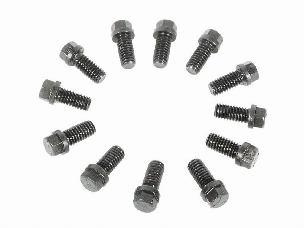 Header Bolt - 3/8-16 in Thread - 0.75 in Long - Hex Head - Steel - Black Oxide - AMC V8 / GM V8 / Mopar B / RB-Series - Set of 12