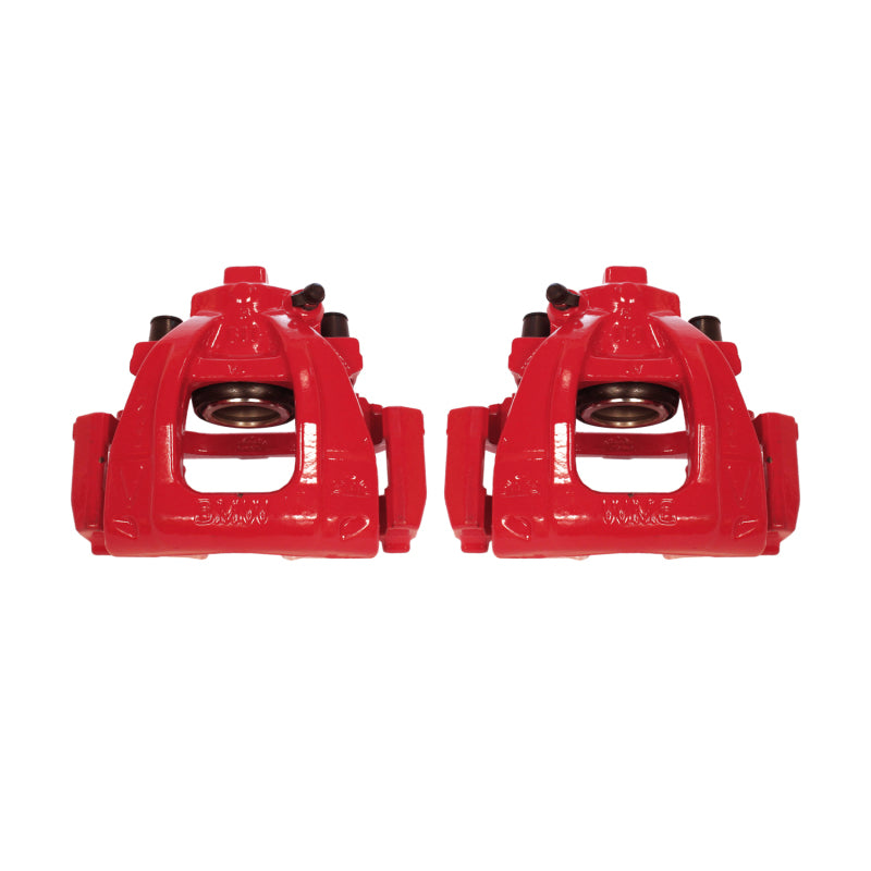 PowerStop Brake Calipers are made specifically with the enthusiast in mind. These calipers bolt directly in place of the stock calipers, and they look and perform great behind stock or custom wheels. PowerStop calipers and the brackets are remanufactured in our Chicago, IL facility and treated with a electrostatic high-temperature red powder-coating. The easy to clean powder coating helps to resist rust and corrosion thus extending the life of your calipers. PowerStop calipers are 100% pressure tested to verify piston operation and prevent any possible leaks from occurring. This ensures that every caliper is inspected for quality and safety. PowerStop caliper pairs are expertly assembled using new seals, caliper guide pins, dust boots, bleeder screws, stainless steel brake pad abutment clips and mounting brackets. High temperature EPDM rubber dust boots and premium silicone lubricant is used for a smoother operation and an extended life in extreme conditions. The color is a nice touch that really stands out behind your wheels!