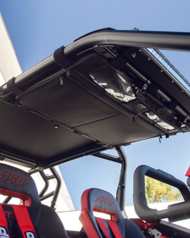 PRP’s Overhead Bag for the Polaris PRO XP provides tons of much needed storage for your UTV, in a spot that's rarely utilized. The bag is designed to fit on the stock PRO XP cage, right above the driver and passenger seats. Features include three separate zippered compartments that make it quick and easy to access your storage when you’re strapped into the seats, or while standing outside the vehicle. Perfect for sunglasses, clothing, spare rags, and extra water bottles! Fits Polaris PRO XP & PRO XP4 (front only) with stock cage. Still works with most aftermarket and OEM roofs. Sold individually.