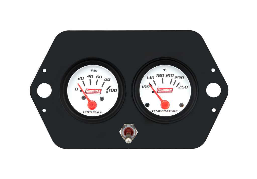 Gauge Panel Assembly - Sprint Panel - Oil Pressure / Water Temperature - Single Pole Switch - 2-1/16 in Diameter - White Face - Kit