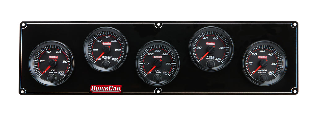 Gauge Panel Assembly - Redline - Oil Pressure / Water Temperature / Oil Temperature / Fuel Pressure / Water Pressure - 0-100 psi Fuel Pressure - Black Face - Aluminum - Black Anodized - Kit