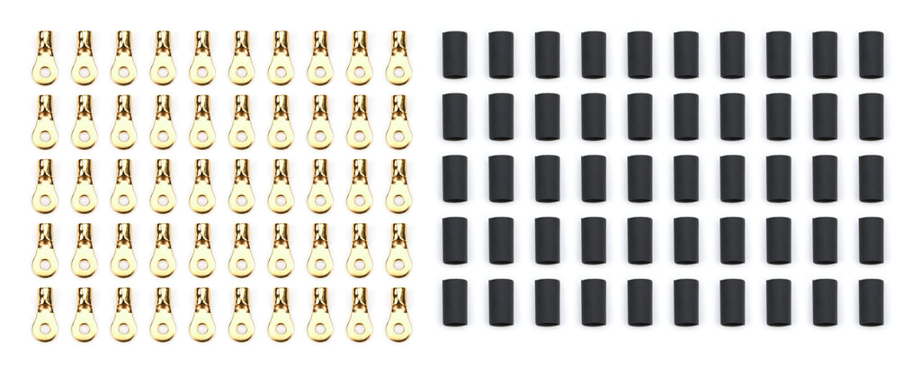 Ring Terminal - 12-10 Gauge Wire - Number 6 Hole - Heat Shrink Included - Copper - Set of 50