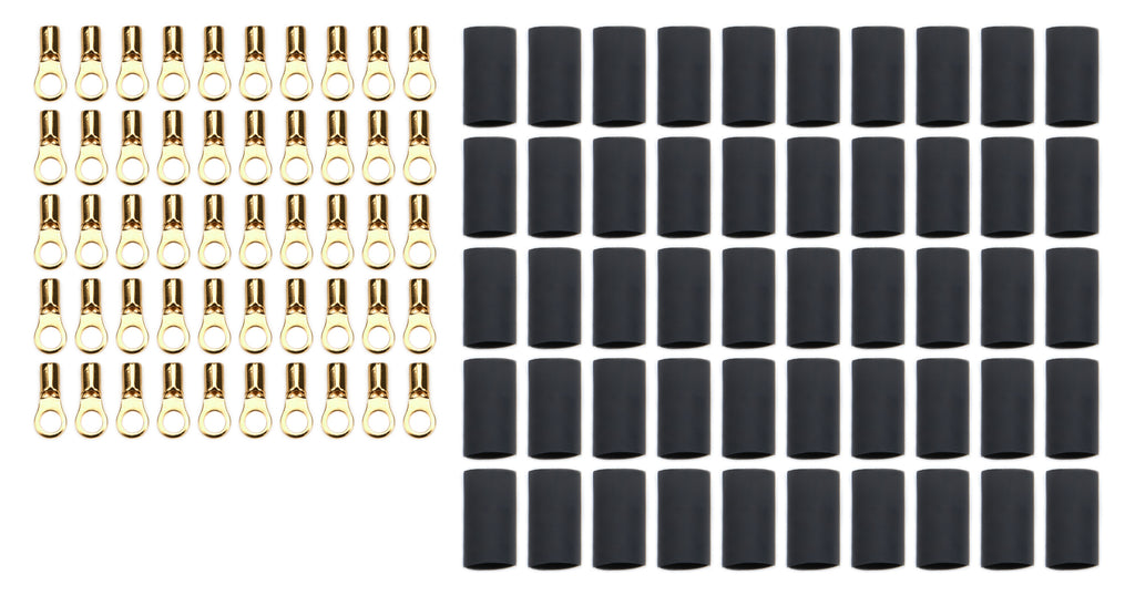 Ring Terminal - 22-16 Gauge Wire - Number 6 Hole - Heat Shrink Included - Copper - Set of 50