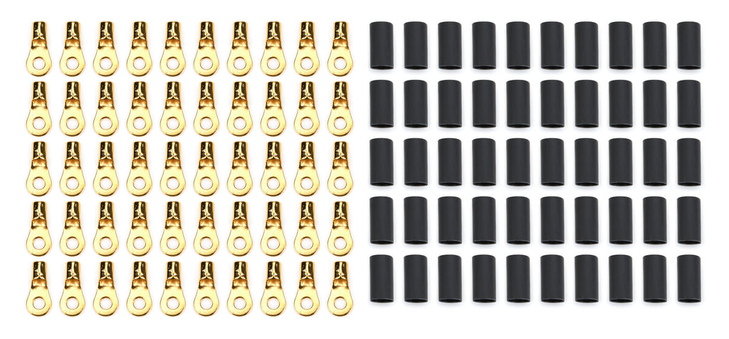 Ring Terminal - 12-10 Gauge Wire - Number 8 Hole - Heat Shrink Included - Copper - Set of 50
