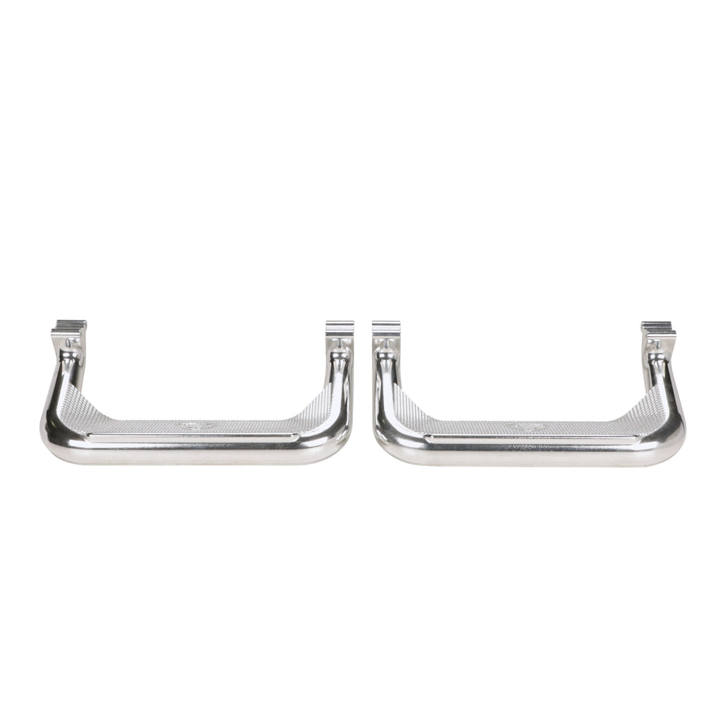 Exclusive multi-mount system. Made of corrosion resistant, durable cast aluminum alloy. Rugged tread pattern provides a safe and attractive non-slip surface. Rocker panel installation provides for the strongest and easiest installation of any step products. Unique design gives the vehicle a rugged off road look, while being a stylish accent for today's vehicles.
