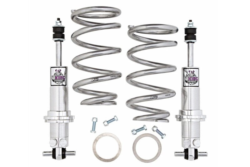 Viking’s front coilover kit combines a high quality hybrid spring with a 19-position double adjustable shock. The upper coil fits the upper spring perch on your vehicle while the lower part of the coil matches the coilover shock bottom. A coil spring compressor is not required, as the adjuster acts as the compressor. The optional thrust bearing and spanner wrenches allow for easy adjustment of ride height from factory to 3″ lowering. The shock itself has independent compression and rebound adjusters to allow custom tuning for street, strip, auto-x and road race – all in one shock. Viking coilovers work perfectly with UMI’s lower a-arm or your factory lower a-arm. Pair with UMI’s geometry corrected upper a-arm loaded with a tall ball joint and head for the nearest high speed corner, 1/4 mile track or weekly cruise.