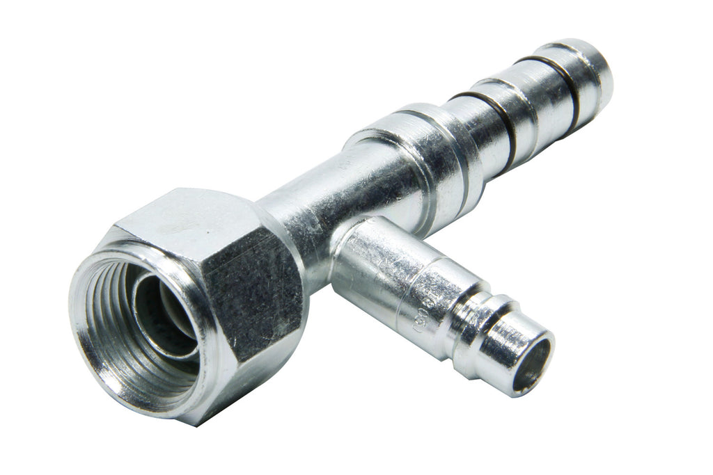 Fitting - Hose End - AC Refrigerant - Straight - 10 AN E-Z Clip to 10 AN Female O-Ring - R134a AC Service Port - Aluminum / Steel - Cadmium / Natural - Each