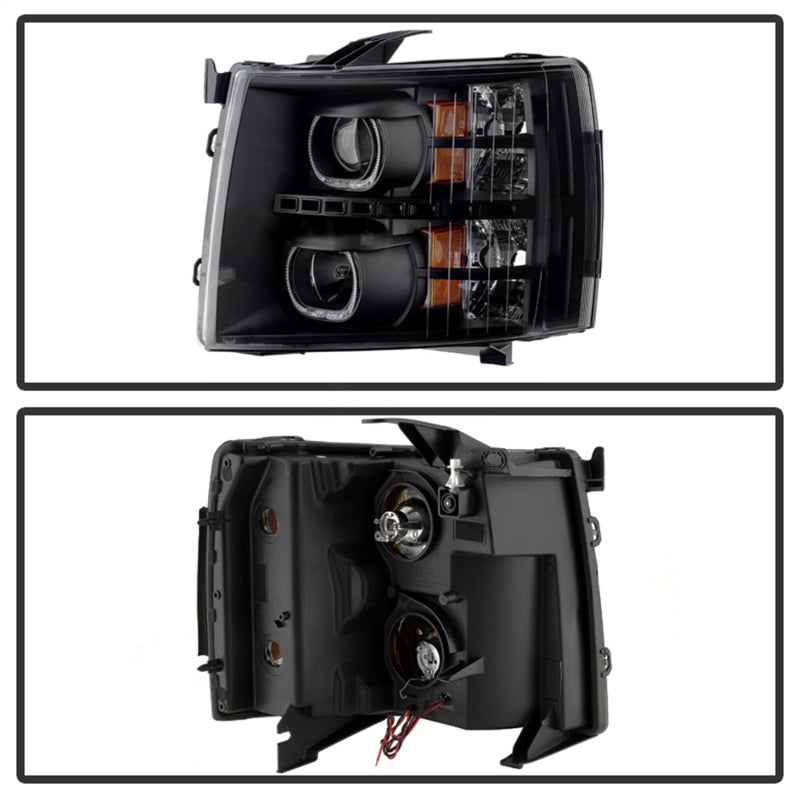Xtune Chevy Silverado 1500/2500/3500 07-13 LED Halo Projector Headlights Black PRO-JH-CSIL07-CFB-BK