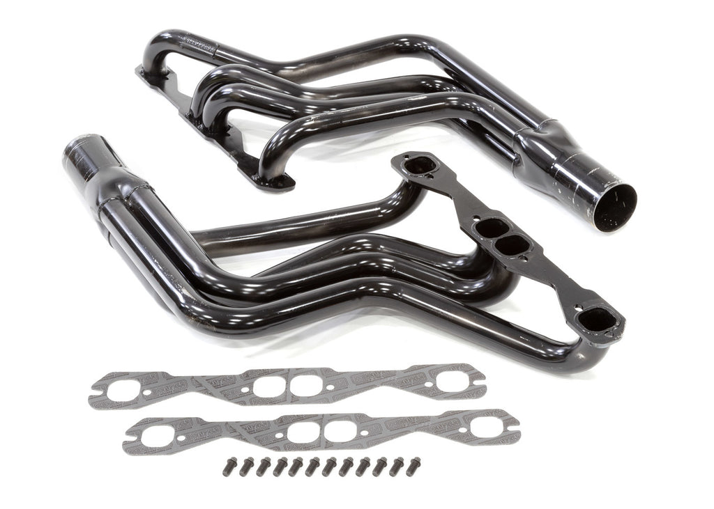 Headers - Street Stock - 1.625 in Primary - 3 in Collector - Gaskets / Hardware Included - Steel - Black Paint - 602 Crate - Small Block Chevy - GM A-Body / F-Body / X-Body - Pair