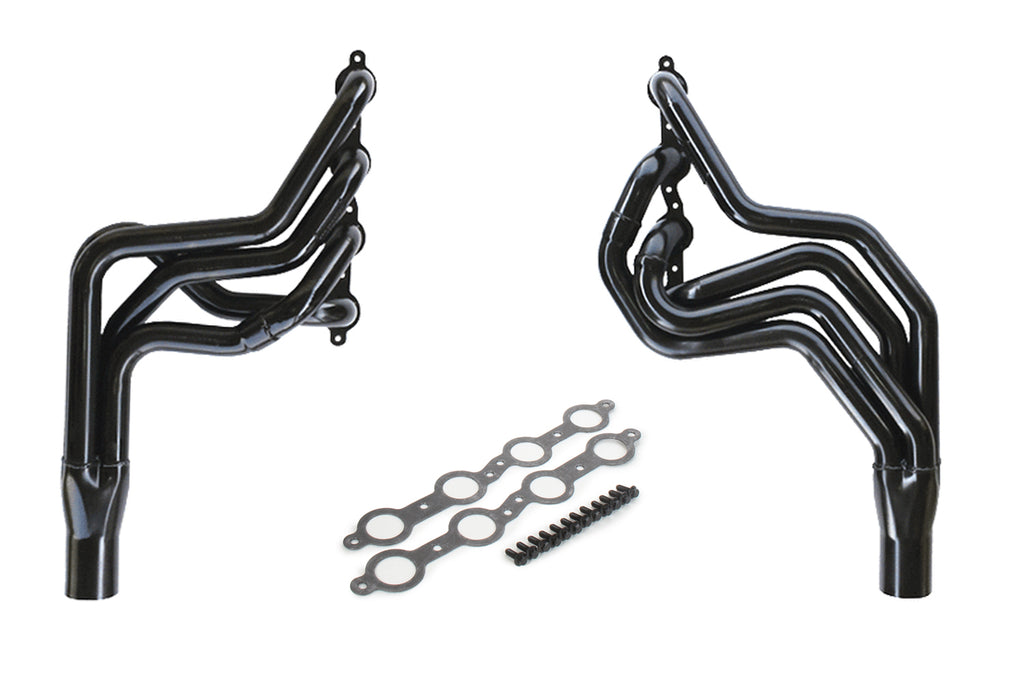 Headers - Street Stock - 1.75 to 1.875 in Primary - 3.5 in Collector - Gaskets / Hardware Included - Steel - Black Paint - Stock Clip - GM LS-Series - Pair