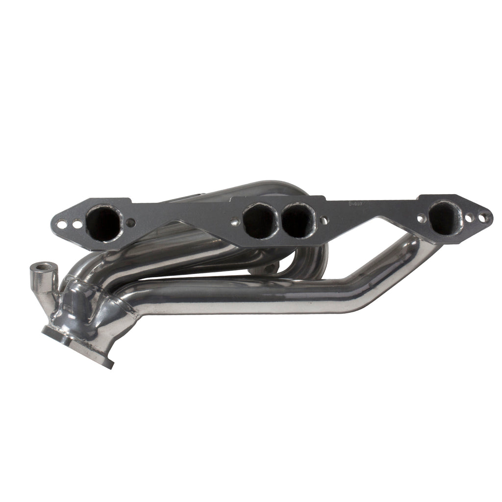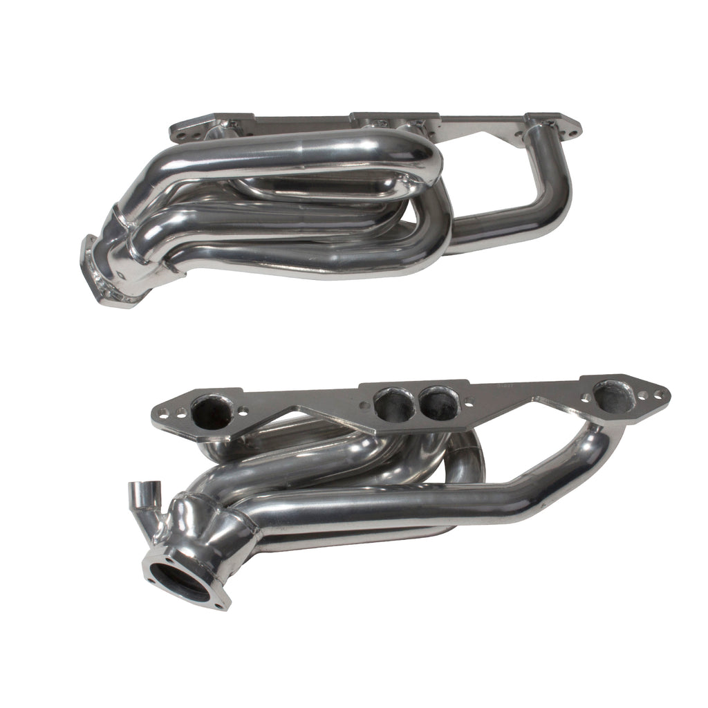 These BBK Performance shorty tuned Length exhaust Headers are designed and constructed as direct fit replacements for all 96-99 GM Truck, SUV 5.0L and 5.7L applications. Each header is manufactured with 1-5/8" CNC mandrel bent tubing that offers unrestricted exhaust flow for increased horsepower and torque over factory OEM manifolds. BBK tuned Length headers offer improved scavenging waves for better combustion, which leads to improved performance and fuel economy over stock or equal Length headers. As with all BBK Performance exhaust headers they feature a 3/8" laser cut flange for additional strength and a guaranteed leak free fit. All headers are robotically and precision hand welded and then pressure tested to ensure years of reliability and performance in the real world. All BBK exhaust headers are available in a titanium ceramic or polished silver ceramic coated finish and include new exhaust header gaskets, header bolts and hardware to complete the installation.
