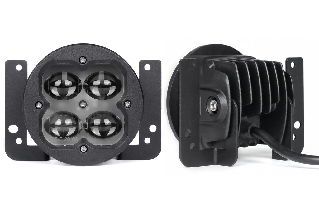 LED Light Assembly - Concept Series Pod - Fog - 20 Watts - 4 White LED - White Lens - 3 in Round - Flush Mount - Hardware / Wiring Harness Included - Aluminum - Black Anodized - Universal - Pair