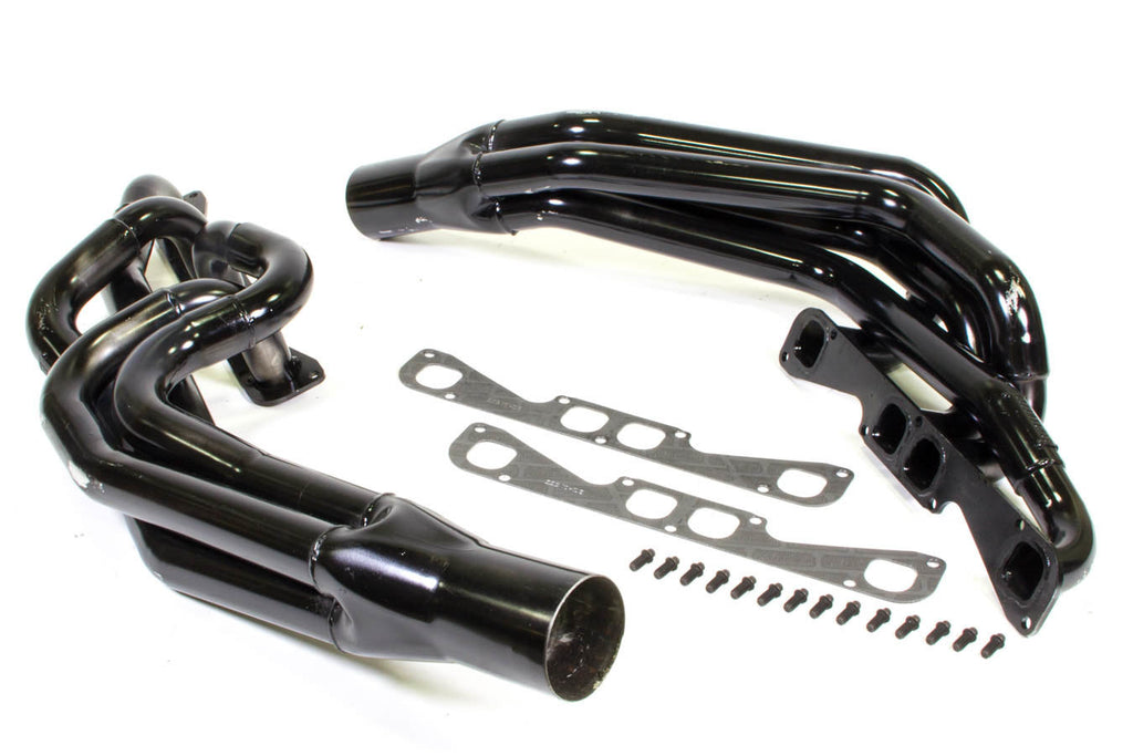 Headers - Conventional Crossover - 1.75 to 2 in Primary - 3.5 in Collector - Gaskets / Hardware Included - Steel - Black Paint - Small Block Chevy - Pair