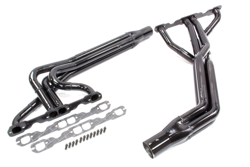 Headers - Dirt Late Model - 1.625 to 1.75 in Primary - 3 in Collector - Gaskets / Hardware Included - Steel - Black Paint - Small Block Chevy - Pair
