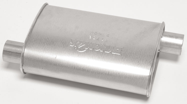 Muffler - Super Turbo - 2.25 in Offset Inlet - 2.25 in Offset Outlet - 14 x 4.25 x 9.75 in Oval - 18 in Long - Steel - Aluminized - Universal - Each