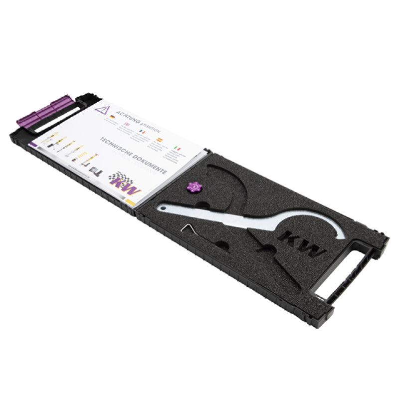 Cutting-edge motorsports technology for more performance on the road. Like every suspension product developed by KW automotive, the suspension manufacturer, and manufactured in Germany, the KW V3 Coilover suspension kit also provides a significant plus in safety reserves in road traffic. Thanks to the chassis with its high-quality dampers, springs, and elastomer spring elements, pitching and rolling movements during load changes such as evasive maneuvers, cornering, acceleration, and braking are significantly reduced. The braking distances are also shortened. Thanks to improved support and feedback, drivers not only feel safer but driving in everyday life becomes even safer. With compression and rebound stage damping, that can be set separately and independently of each other, the damper setup can be customized to your personal driving preferences or vehicle changes such as weight, tire characteristics, or altered vehicle rigidity. True performance optimization is only possible with this unique, patented system. For example, this allows the compression damping force to be increased and get more grip from the tires, to improve cornering behavior and reduce squat without simultaneously altering the rebound stage damping which is optimally matched to the spring rate, a scenario which results in reduced grip and the associated loss of performance. The KW V3 coilover kit is the ideal tool for performance-oriented drivers and experienced tuning enthusiasts who place a strong emphasis on the overall performance of their suspension. The Variant 3 features patented TVR-A and TVC-A technology that provides separately adjustable rebound and compression damping. The extensive adjustment range of the independently configurable rebound and compression make it easy to directly influence the steering behavior, directional stability, grip and handling characteristics for confident and repeatable results at the limit of driving dynamics.