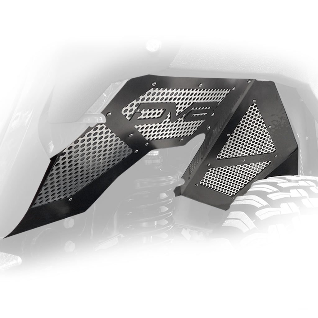 | Description_MKT | INFEND-03FB 2018 to present Jeep JL Inner Fenders (Front Black). The DV8 Offroad INFEND-03FB Aluminum inner fenders are designed to reseal your engine compartment when using aftermarket fenders, clean up your inner fender, and provide better air flow where it counts. Our inner fenders also allow easy access to the shocks and do not require for the fender and inner fender to be removed like our competitors! Features: Black powder coat, Reseals engine compartment, Compatible with most fenders, No drilling or cutting, Easy to install, Large vent area for better ventilation. |