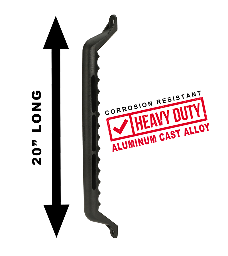 Grab Handle features a uniquely designed diamond tread pattern provides a safe, non-slip surface on the flat step area. Our exclusive multi-mount system is designed for a precision fit and easier installation. The Hoop II step is constructed from extremely strong die-cast aluminum alloy for maximum quality and durability. CARR steps are available in XP3 Black, XP4 Titanium SIlver or Safety Yellow powder coated finishes or a high luster polished finish.