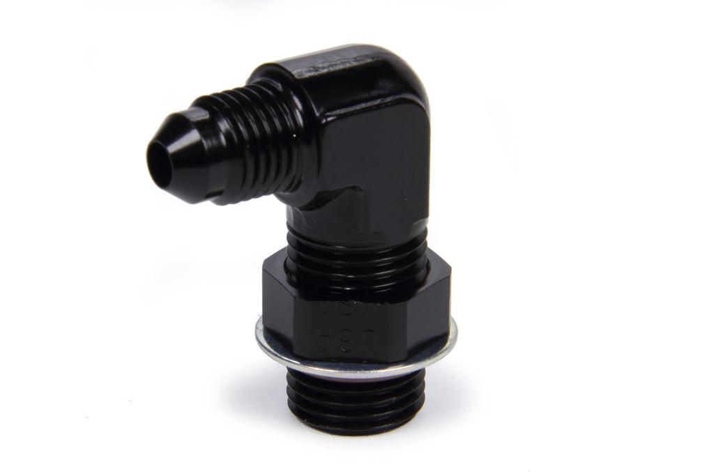 Fitting - Adapter - 90 Degree - 4 AN Male to 6 AN Male O-Ring - Aluminum - Black Anodized - Each