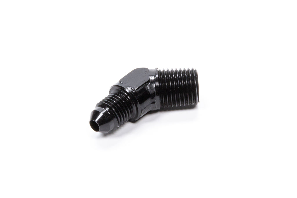 Fitting - Adapter - 45 Degree - 4 AN Male to 1/4 in NPT Male - Aluminum - Black Anodized - Each
