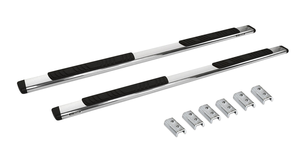 5" WIDESIDER Platinum Side Bars + Brackets - 87" Long - Polished stainless steel - Low profile design, adds functionality and style to your vehicle. Available in lengths for regular, extended and crew cab pickup application. Also available for most SUV, CUV's. SuperGrip step pads allow easier, safer entry and exit. Bolt-on, no-drill installation for most applications. WIDESIDER brackets included. Polished stainless steel with a limited lifetime warranty