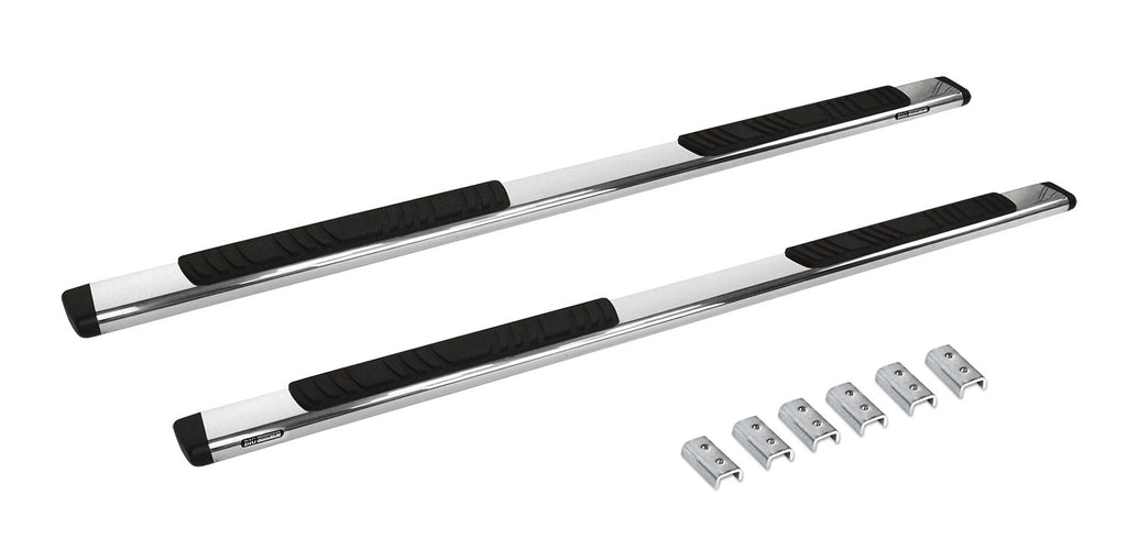 5" WIDESIDER Platinum Side Bars + Brackets - 80" Long - Polished stainless steel - Low profile design, adds functionality and style to your vehicle. Available in lengths for regular, extended and crew cab pickup application. Also available for most SUV, CUV's. SuperGrip step pads allow easier, safer entry and exit. Bolt-on, no-drill installation for most applications. WIDESIDER brackets included. Polished stainless steel with a limited lifetime warranty