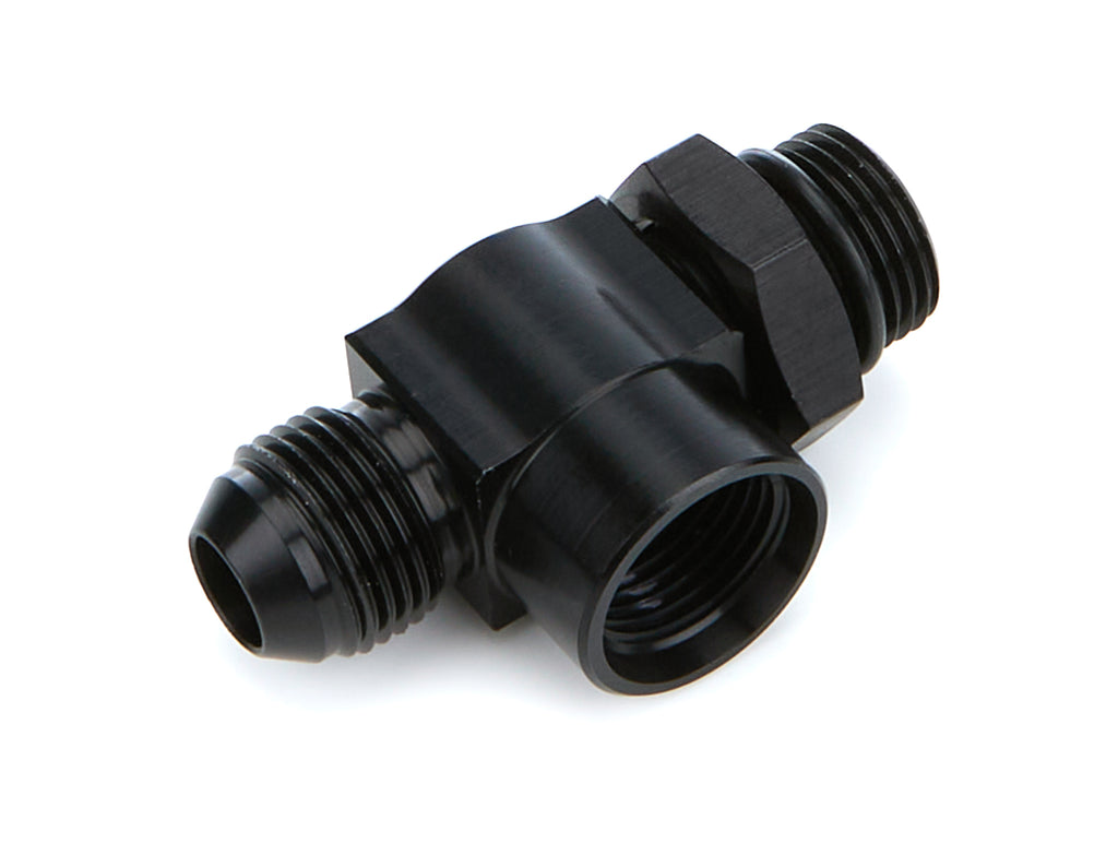 Fitting - Adapter Tee - 8 AN Male x 8 AN Male O-Ring x 8 AN Female - Aluminum - Black Anodized - Each